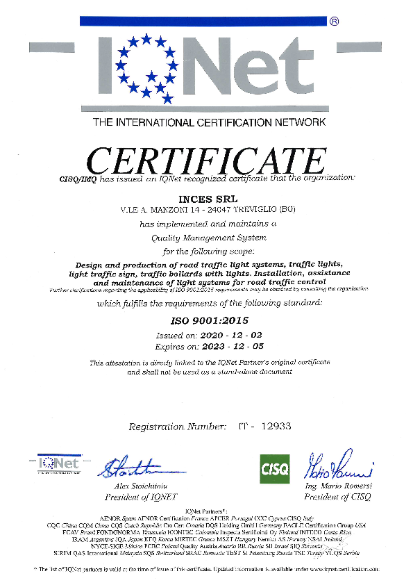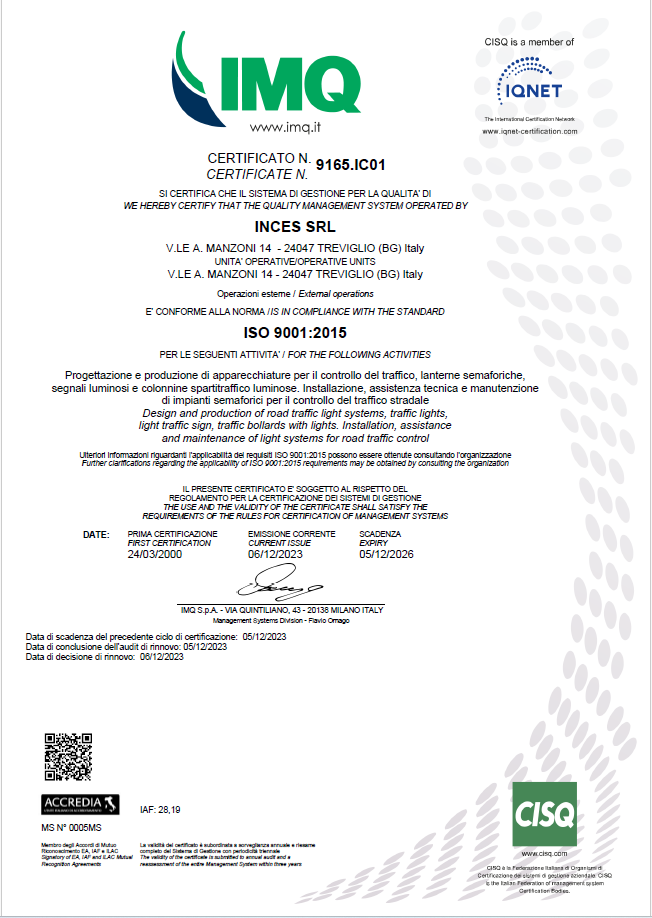 dalla CISQ/IMQ-CSQ (Certificato N° 9165.IC01).